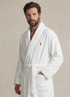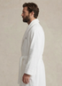 Ce peignoir en coton à silhouette portefeuille associe confort absolu et élégance intemporelle. Sa coupe enveloppante, complétée par une ceinture assortie, permet un ajustement personnalisé et une tenue naturellement fluide.