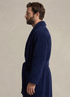 Ce peignoir en coton à silhouette portefeuille associe confort absolu et élégance intemporelle. Sa coupe enveloppante, complétée par une ceinture assortie, permet un ajustement personnalisé et une tenue naturellement fluide.